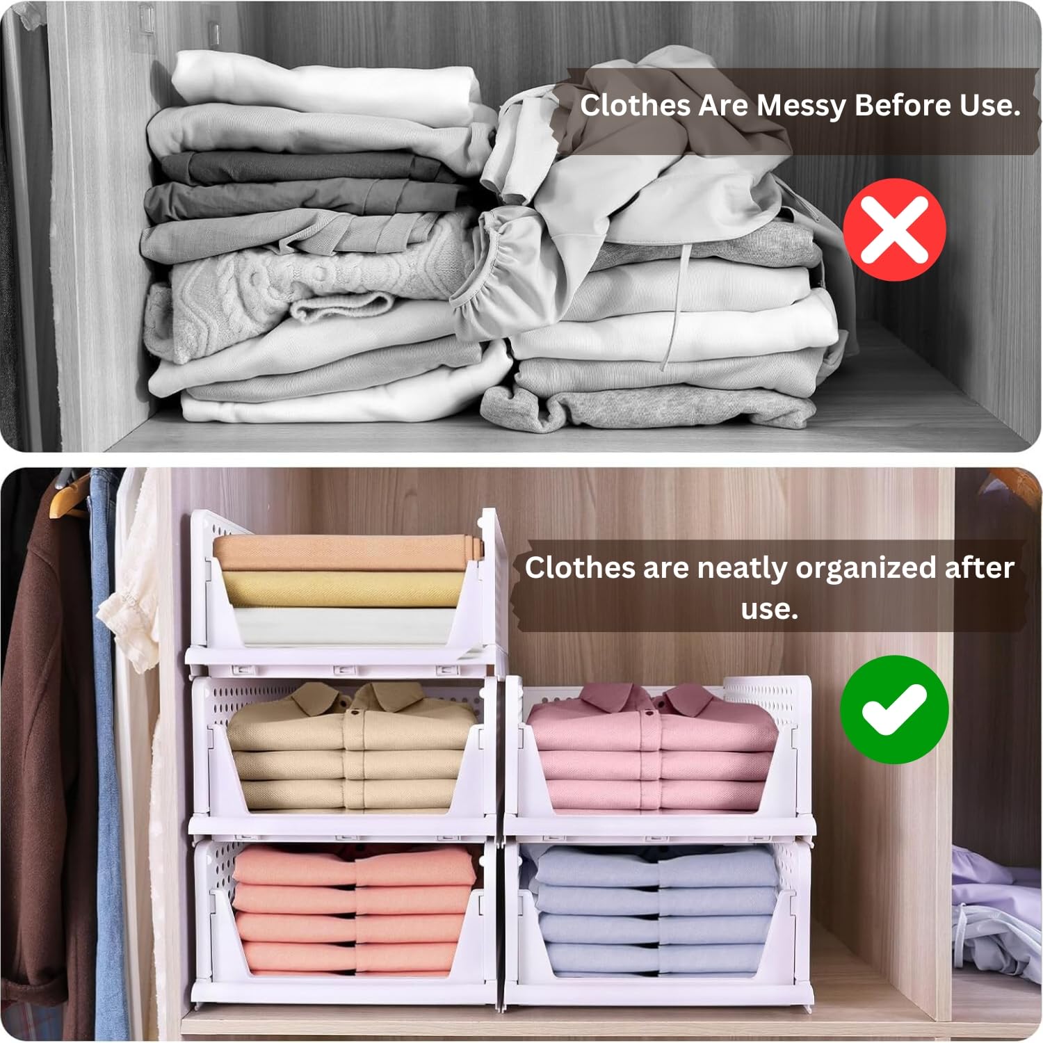- DURABLE METAL FRAME: These wardrobe organizers feature a sturdy rectangular metal frame construction for long-lasting use and support. These baskets are built to last, thanks to their robust metal frames. They maintain their shape even when filled to capacity, ensuring your items remain well-organized.